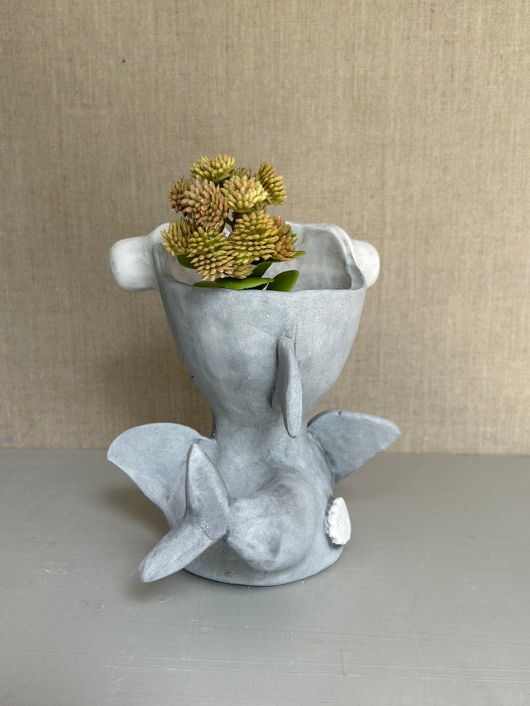 Mallet is a hammerhead shark pothead planter, hand sculpted and hand painted. Made with a white stoneware clay and painted with high quality underglazes. The clay pot is porous and there is a drainage hole to help keep plants dry. Mallet comes with a name plate drainage tray.